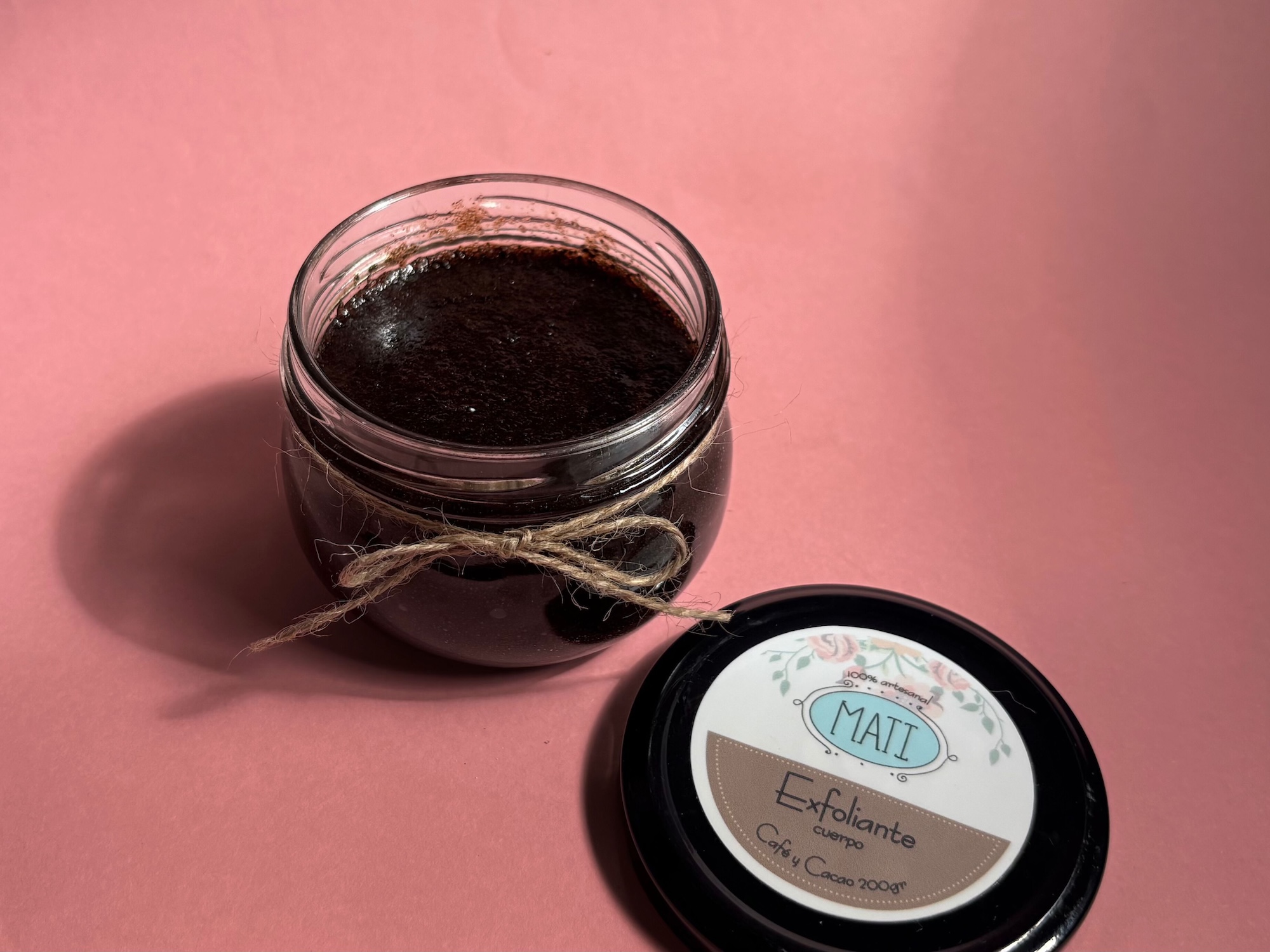 100% artesanal. Una delicia para tu piel y el olfato. Elaborado con un delicioso café y cacao peruano. Este exfoliante retira las células muertas y toxinas de la piel. Activa la circulación, por lo que es excelente contra la celulitis, cicatrices, estrías y varices; ayuda a mejorar su apariencia con el uso regular.