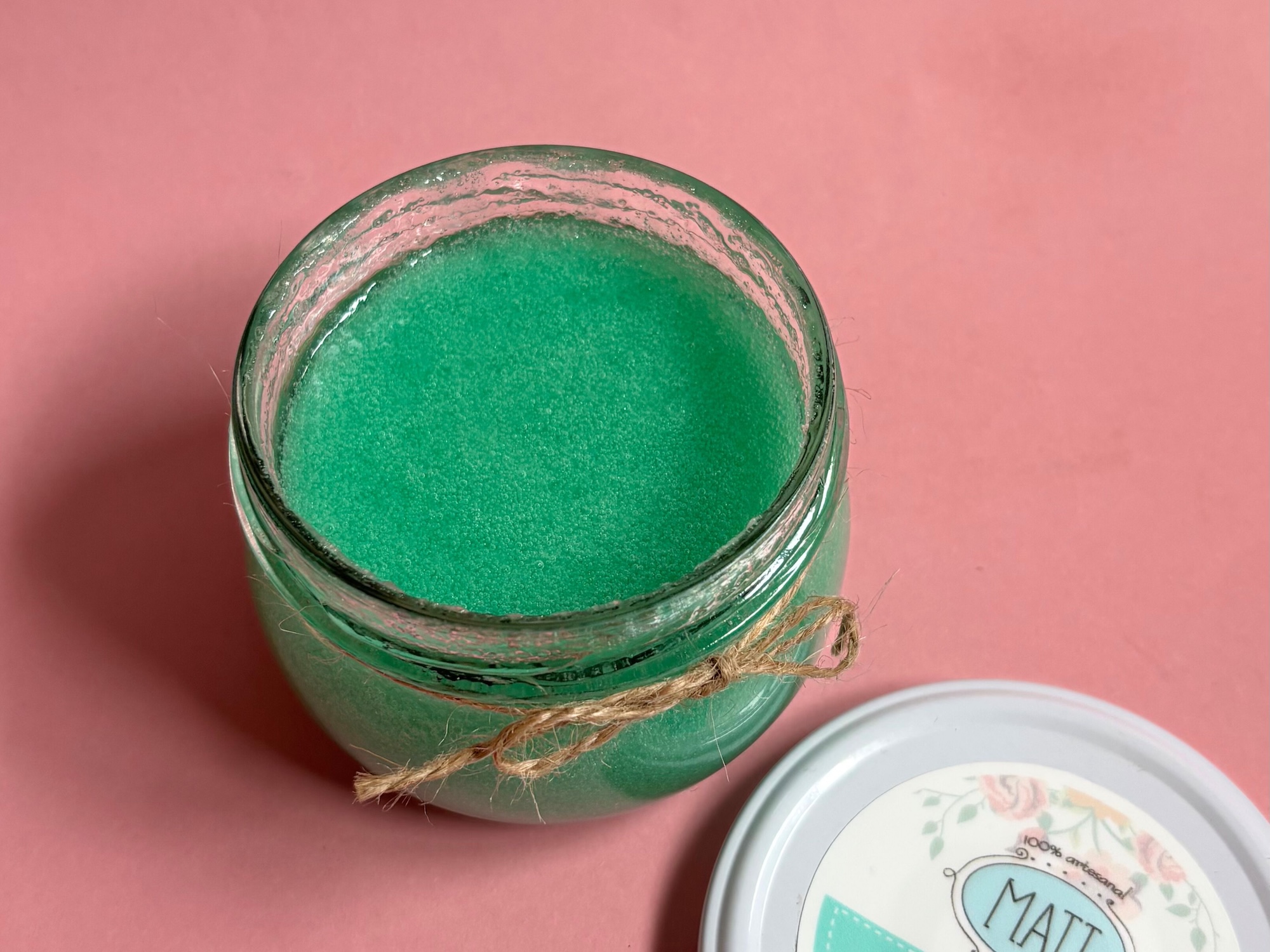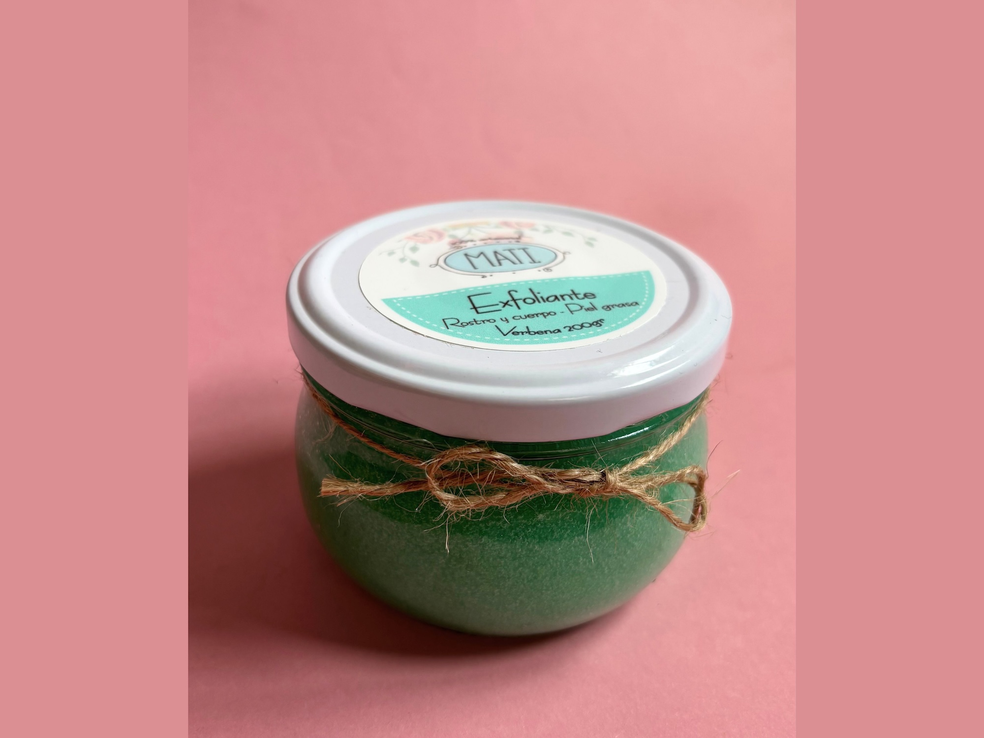 Está elaborado con azúcar, agua, betaína de coco, glicerina USP, aceite de jojoba, goma xanthan, aceite esencial de verbena, conservante aceptado en cosmética natural, mica.