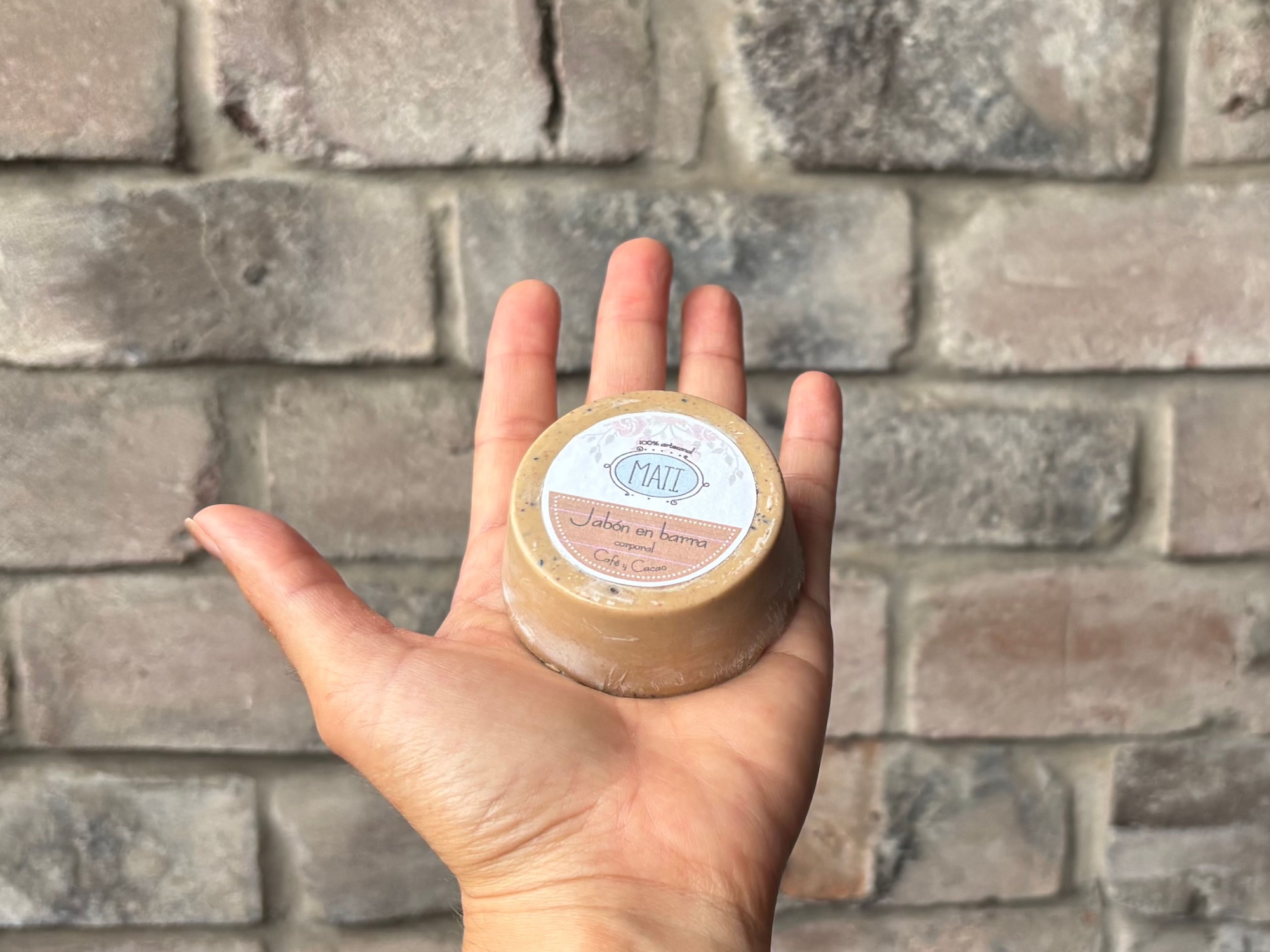 Está elaborado con glicerina vegetal a base de aceite de coco, café, manteca de cacao y aceite esencial de naranja.