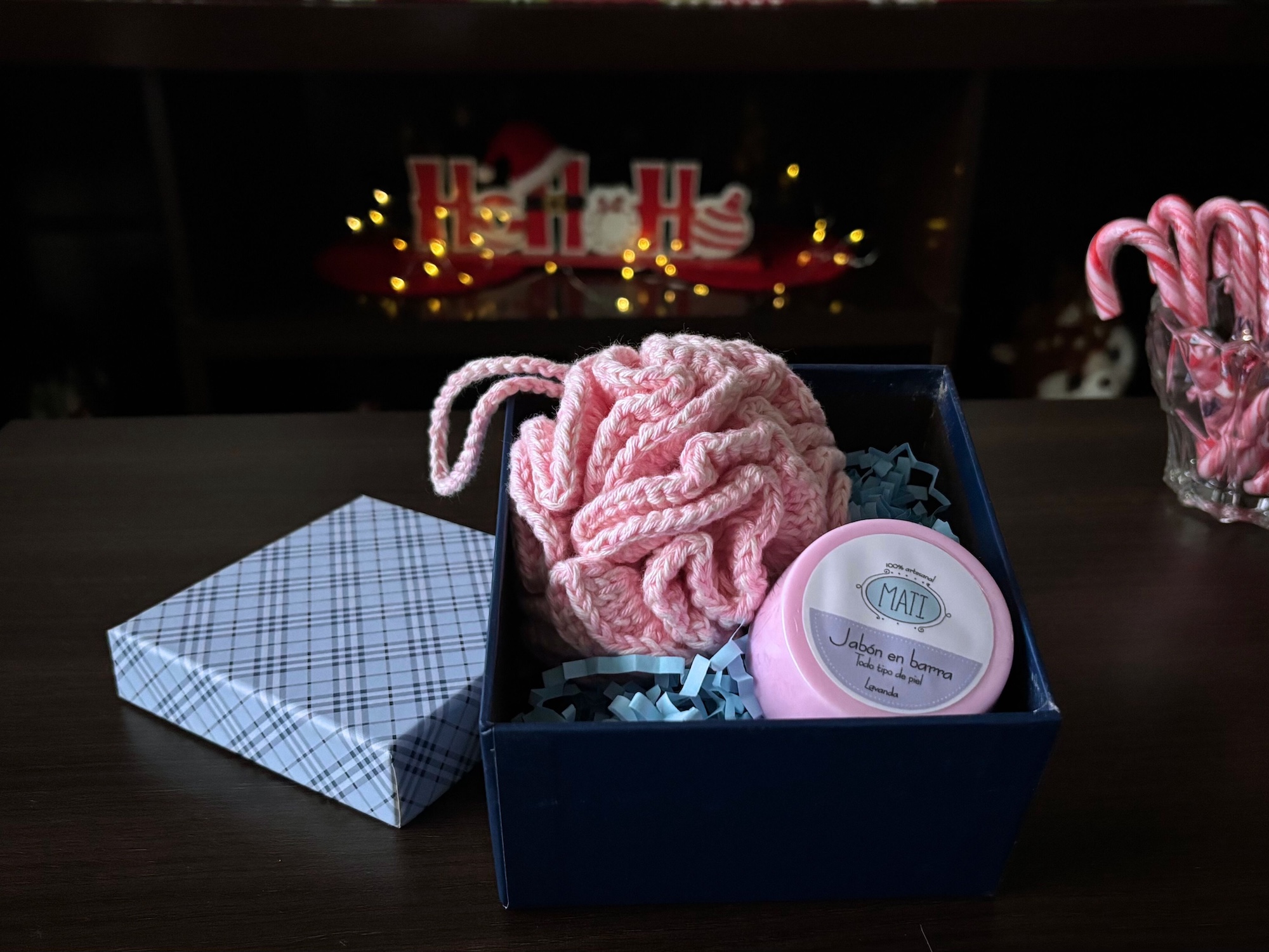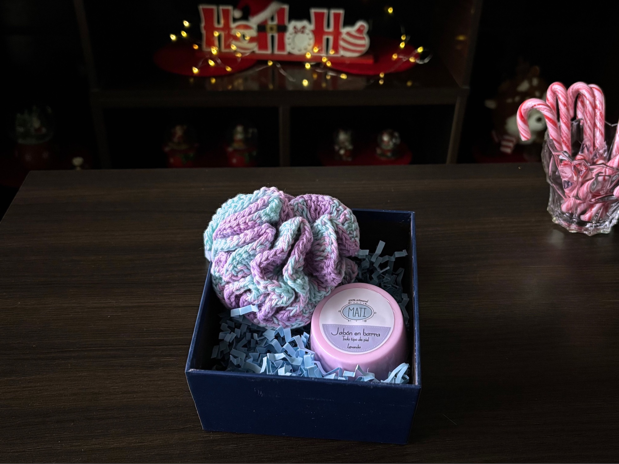 | Pack | Pack 1: Esponja Lila y jabón de lavanda, Pack 2: 2 jabones de lavanda y toalla facial, Pack 3: Jabón de café y Crema hidratante corporal, Pack 4: Bálsamo multiuso dorado y pincel de silicona, Pack 5: Bálsamo multiuso dorado y bálsamo para labios, Pack 6: Exfoliante facial y crema hidratante para rostro piel grasa, Pack 7: Esponja rosada y jabón de lavanda |